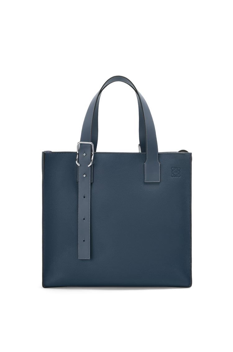 DescriptionThe buckle zip tote is a functional bag with a boxy zip top construction, a side magnet to secure the zip tail and distinctive asymmetric top handles and buckles that give the bag its name. This version is crafted in soft grained calfskin.