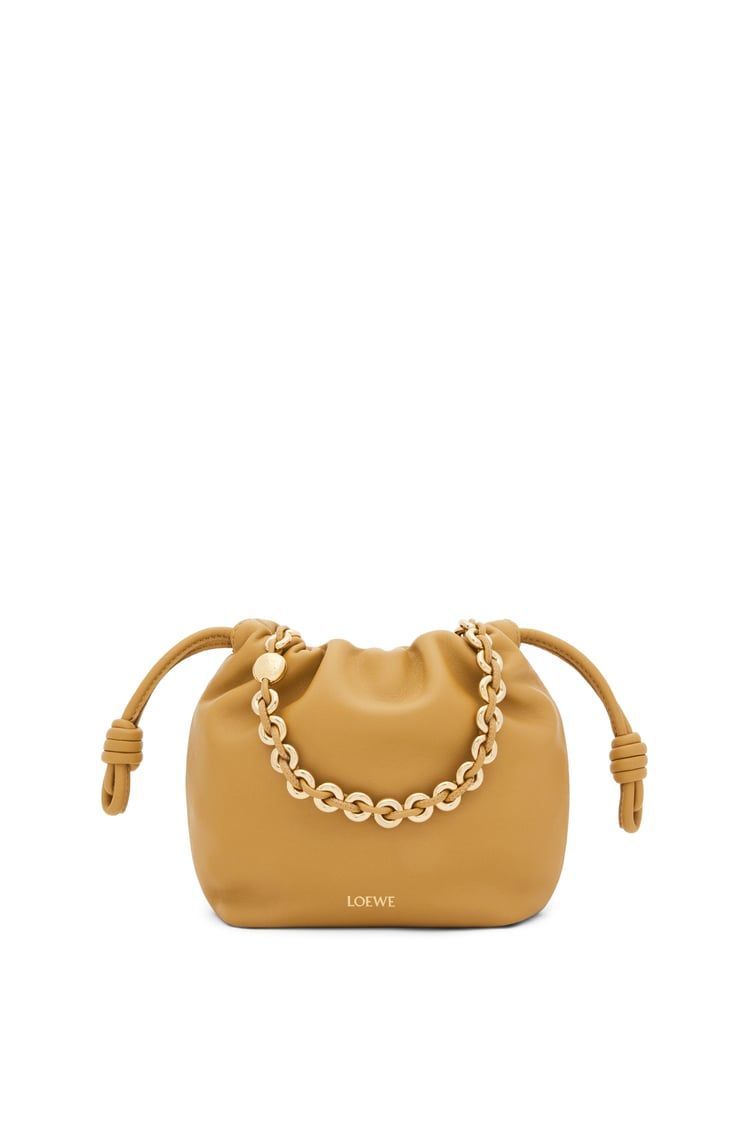 DescriptionThe flamenco purse is defined by a ruched design inspired by the flamenco line's aesthetics, with key details such as the signature knots at the sides and the donut chain. This mini version is crafted in mellow nappa lambskin