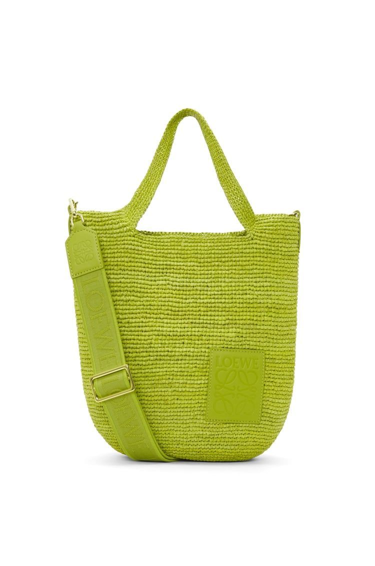 DescriptionThe slit bag is a versatile tote with top handles and a body in soft handwoven raffia. This mini version comes with a loewe jacquard shoulder strap and is made in spain using raffia leaves that have been cultivated, harvested, sun-dried and handwoven by artisans in madagascar.