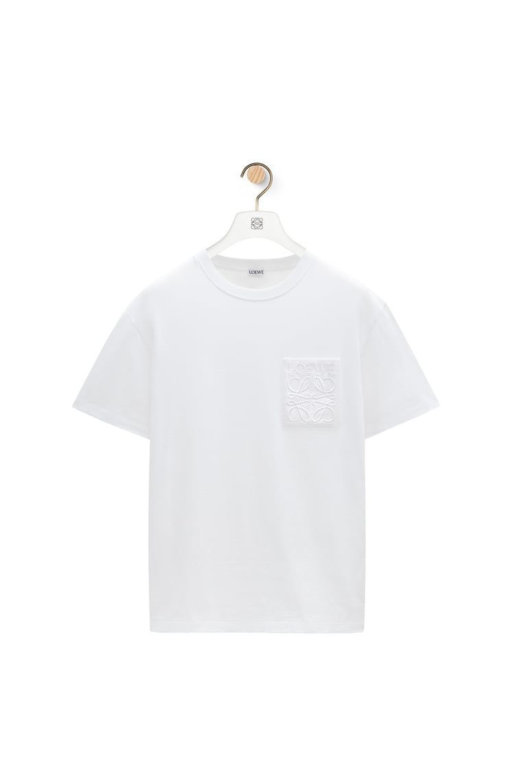 Loose fit, regular length t-shirt with a round neck and ribbed collar. Features loewe anagram embroidered pockets on the chest.