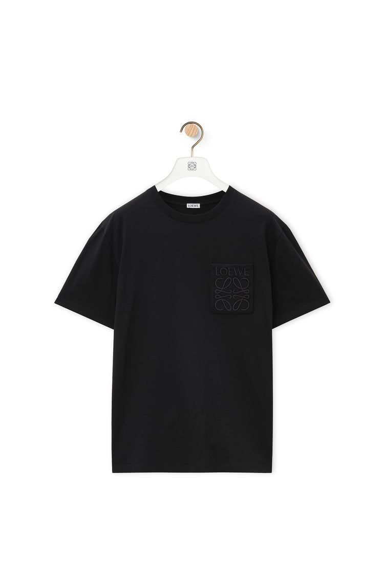 Cotton t-shirt in a relaxed fit. Features a crew neck, ribbed collar, and an embroidered loewe anagram on the chest patch pocket.