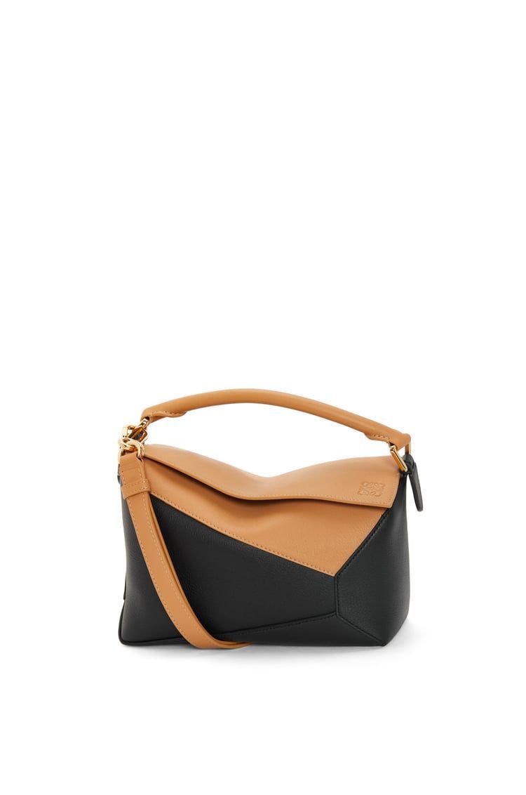 DescriptionThe puzzle bag is the debut bag for loewe by creative director jonathan anderson. A cuboid shape and precise cutting technique create puzzle’s distinctive geometric lines. This small two-tone version is crafted in classic calfskin