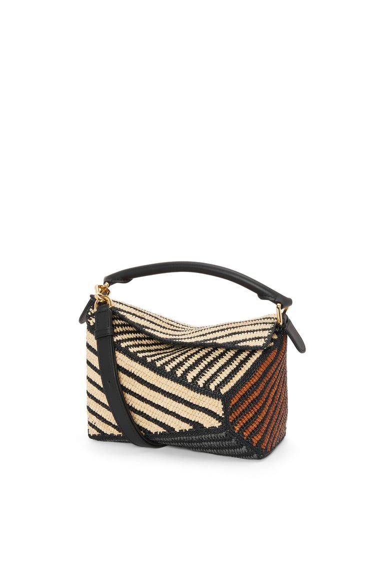 DescriptionThe puzzle bag is the debut bag for loewe by creative director jonathan anderson. A cuboid shape and precise cutting technique create puzzle’s distinctive geometric lines. This small version features a striped pattern and is made in spain using raffia leaves that have been cultivated, harvested, sun-dried and handwoven by artisans in madagascar