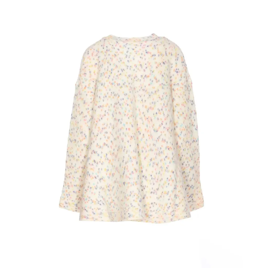 A multicolored v-neck long-sleeved sweater with a regular fit. Features a button-up front and a textured knit.