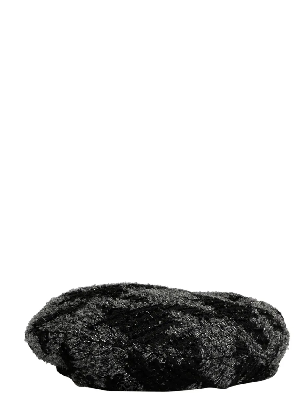 A black faux fur beret with a textured finish.