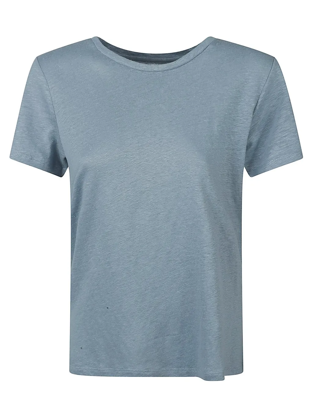 A simple blue t-shirt with a crew neck and short sleeves.