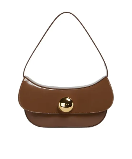 DescriptionThe butterfly wanderer bag features a shiny matte leather construction with a medium size and semi-rigid design. It has a harmonious curved outline and an oversized metal rivet twist lock engraved with the marni word. The interior is lined with suede leather and includes card slots.