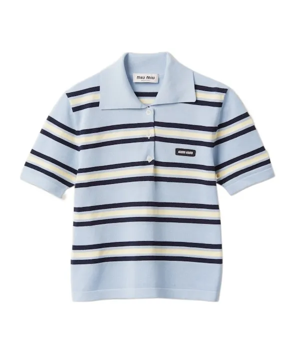 Miu Miu Striped Knitted Cotton Polo Shirt | Wardatrobe