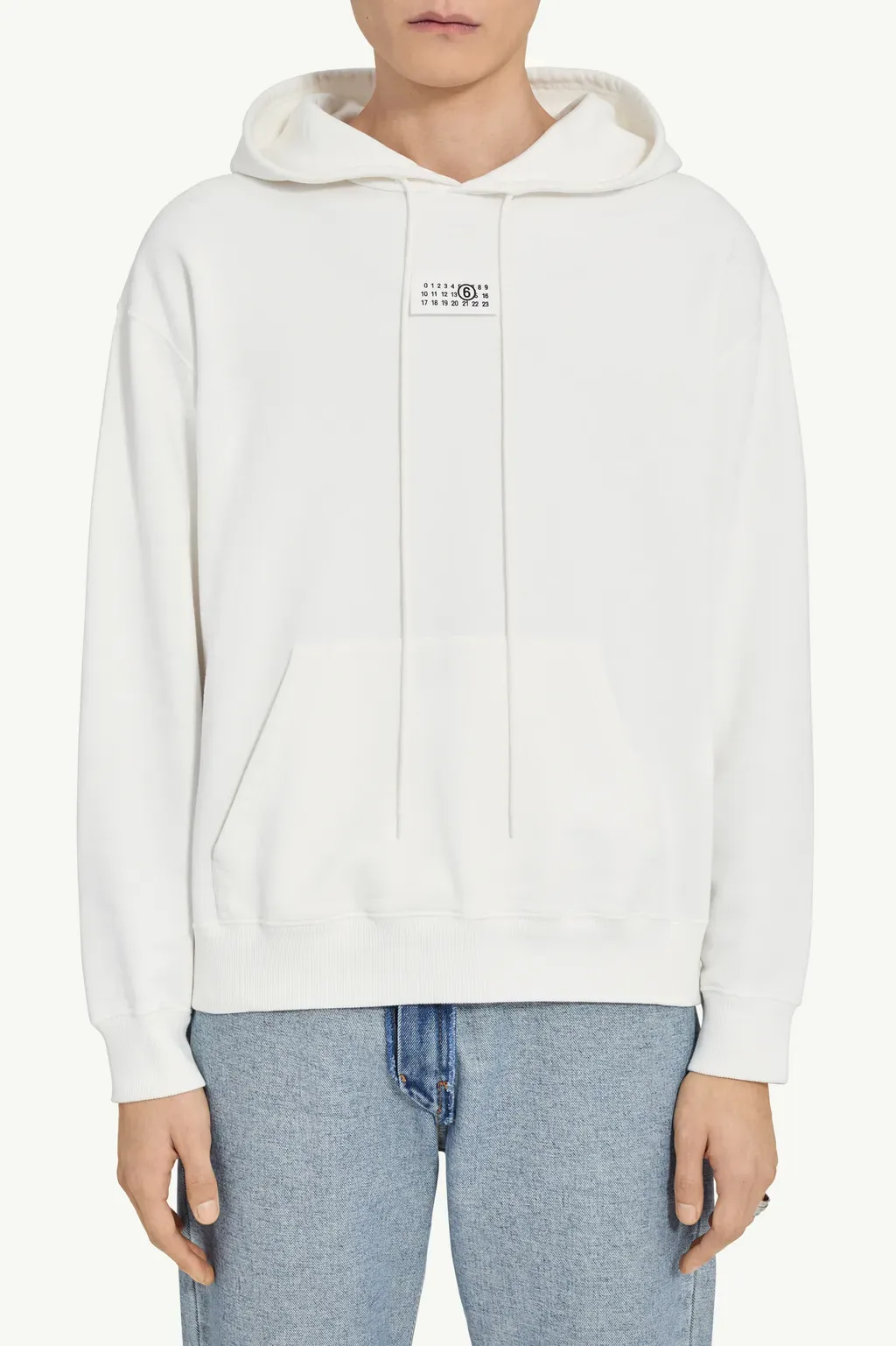 DescriptionA relaxed fit cotton sweatshirt featuring the mm6 numeric artwork label at the chest and a white stitch line at the reverse. It has a kangaroo pocket and elongated tonal drawstrings.