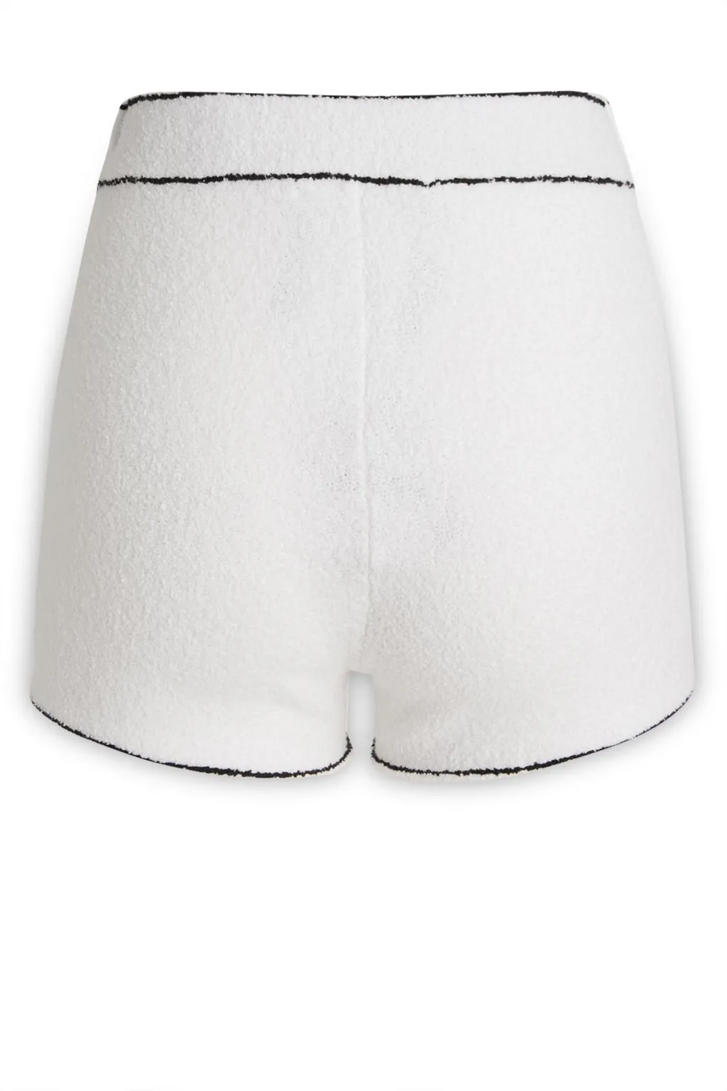 Cotton and polyamide blend shorts in white with contrasting black trim. These shorts feature a high-waisted silhouette with two decorative pockets on the front.
