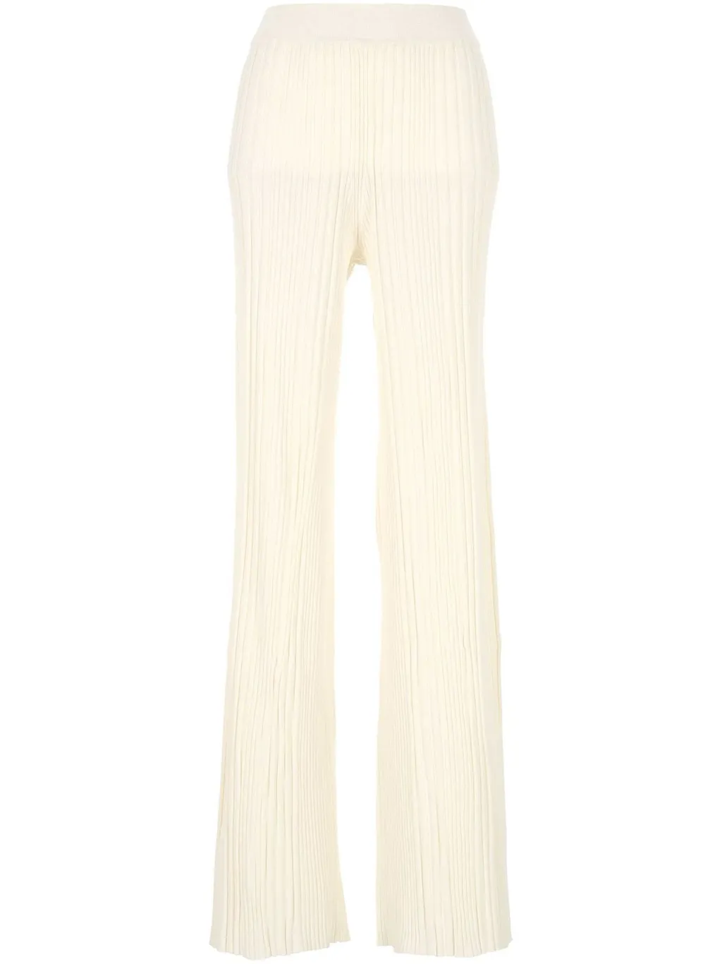 Pants with a ribbed knit texture and a wide-leg silhouette. Features a high-waisted design.