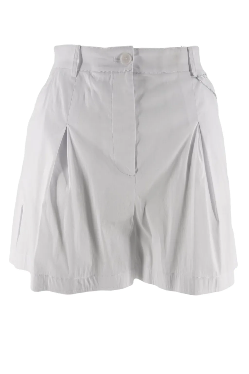 Cotton, polyamide, and elastane shorts with a high waist and inverted pleats. Features a button and zip closure.