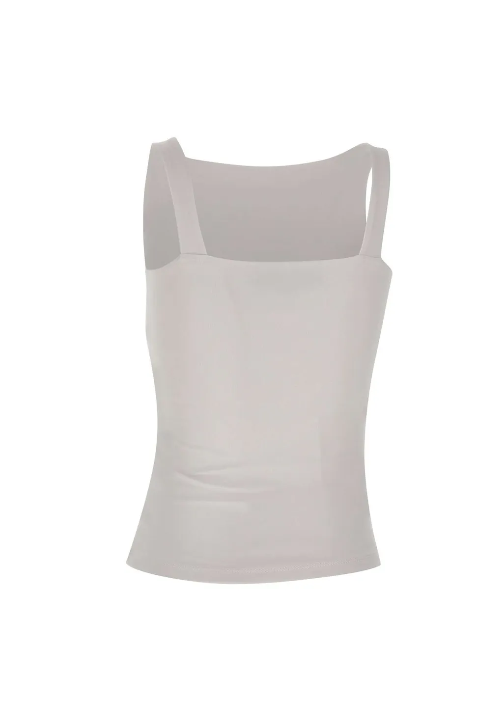 A white polyamide and elastane blend tank top with a fitted silhouette. It features a square neckline and tank straps. This top is made in china.