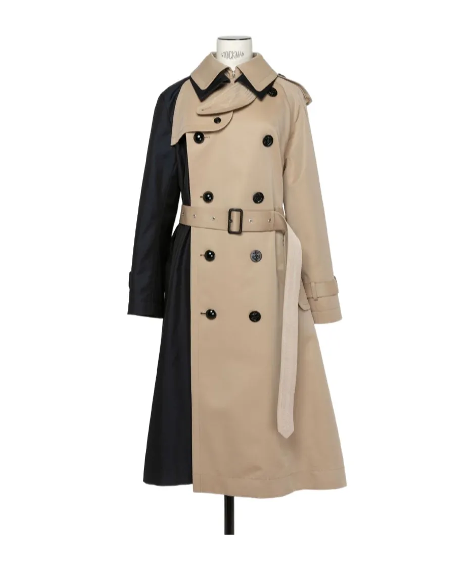 Sacai Sacai Two-Toned Double Breasted Belted Trench Coat | Wardatrobe