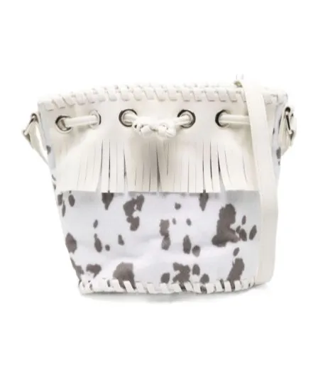 Cow print, tassel details, adjustable shoulder straps.