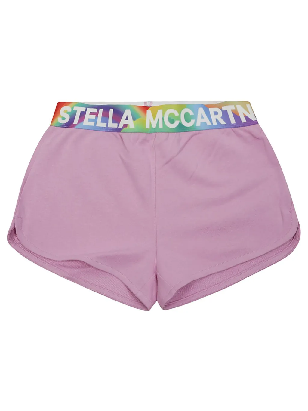 Cotton shorts with a rainbow logo waistband. Features a relaxed fit and dolphin hem.