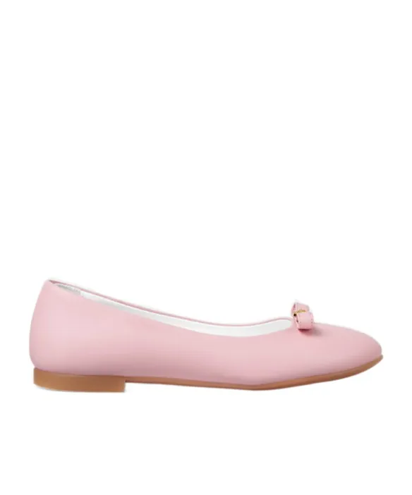 Ballet flats with a round toe and front logo. No lace.