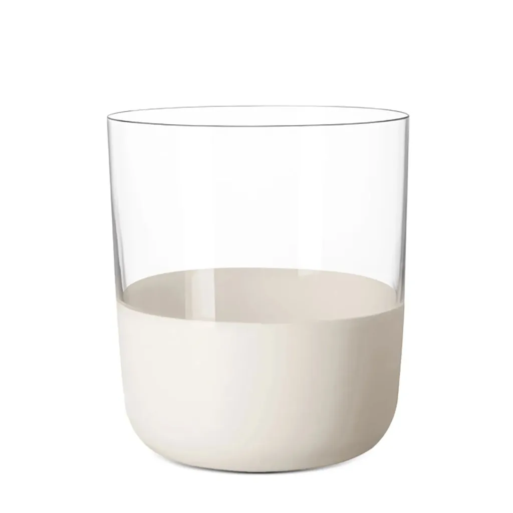 A cylindrical glass vase with a solid cream-colored base that covers approximately the bottom half of the vase. The top half is clear glass.