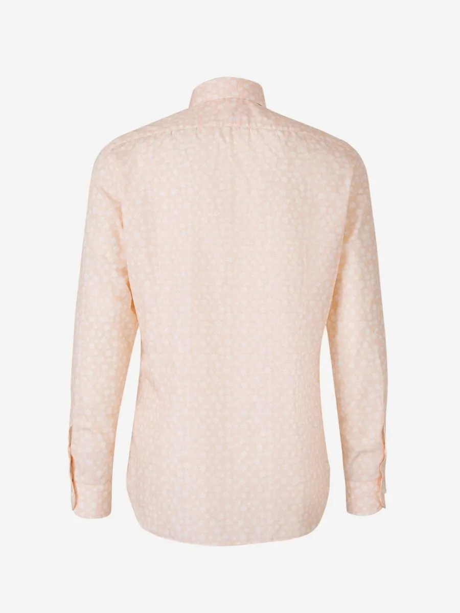 A long-sleeved collared shirt with a subtle all-over pattern.